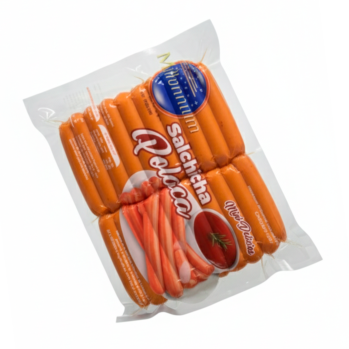 El producto se realiza con materia prima carnica de aves , embutida en funda de colageno comestible su sabor especial se debe a un conjunto de aditivos especiales destinados a un producto de buena calidad, su apariencia es color naranja conjunto de carnicos de cortes de cerdo y ave.